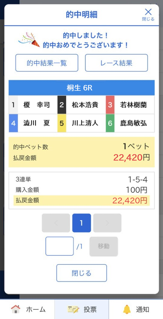 競馬的中レース競輪的中レース