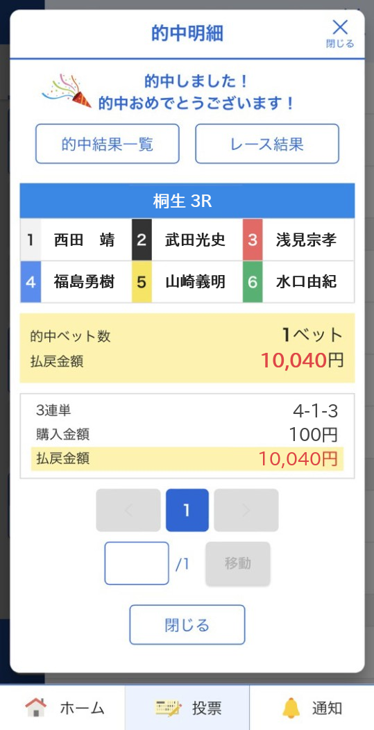 | 5 | ◎ | 中山翔太 | B1三重 | -1.0 | 2.68 | 6.10 | 0 / .000.00 | No. 150.00 | No.7 60.00 | |