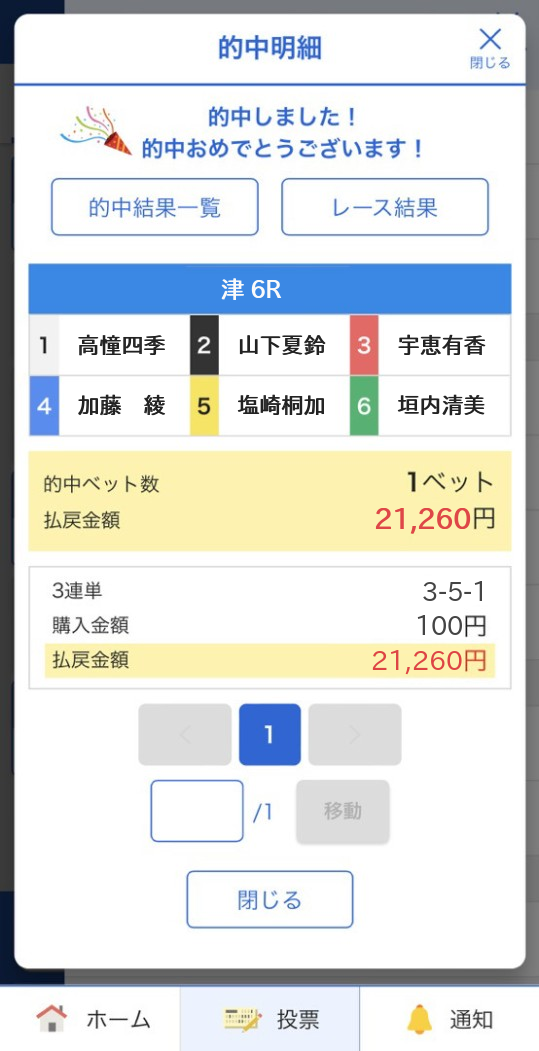ここではお任せの自動投票だけではなく、予算などからチョイス、追加、削除が自由な投票を入力アシストで投票する事が可能です。