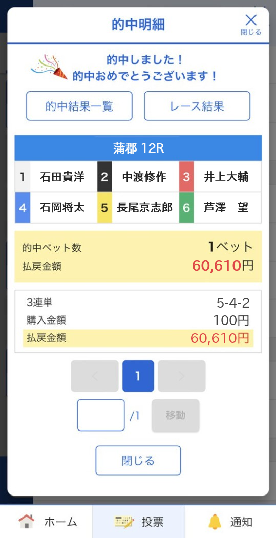 | 3 | ◎ | 角谷健吾 | A2東京 | 0.14 | 6.13 | 44.95 | 0. / 000.00 | No.5 250.00 | No.4 34.43 | |