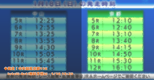 | 2026年1月18日 | 「日経新春杯(GⅡ)」出馬表 馬柱 レース予想・回顧 京都競馬場 11R 15:35分発走 ![]() ![]() ![]() ![]() ![]() ![]() ![]() 日経新春杯ニュース一覧 |