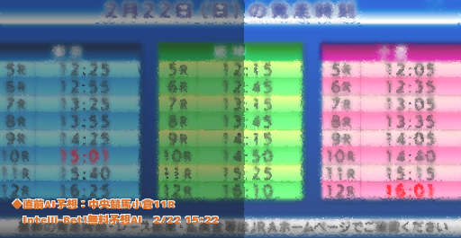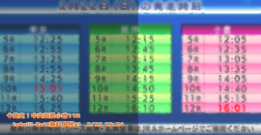 | 2026年2月22日 | 「小倉大賞典(GⅢ)」出馬表 馬柱 レース予想・回顧 小倉競馬場 11R 15:35分発走 ![]() ![]() ![]() ![]() 小倉大賞典ニュース一覧 |