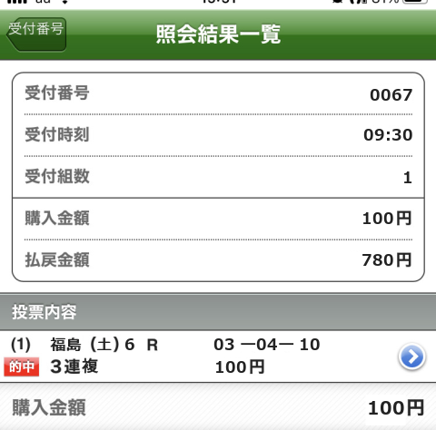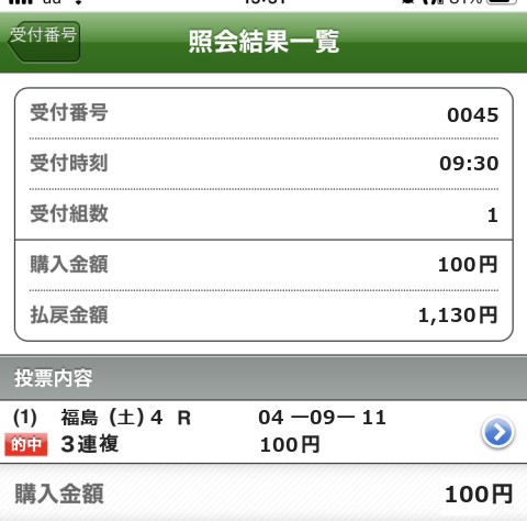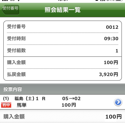 1着:果1番人気 1回 0.13%