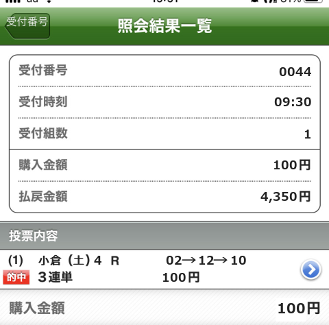12番人気 6回 0.65%1着:結果3番人気 6回 0.65%