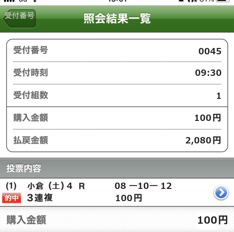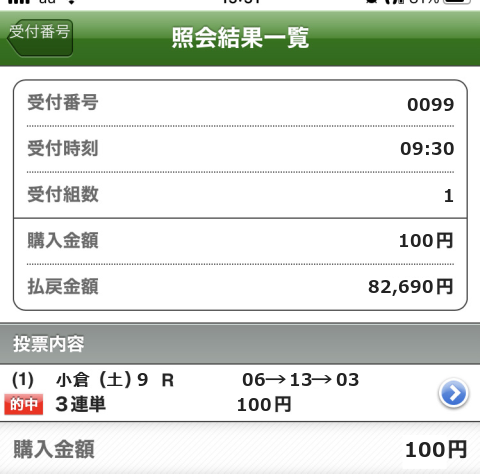 1着:果10番人気 1回 0.11%