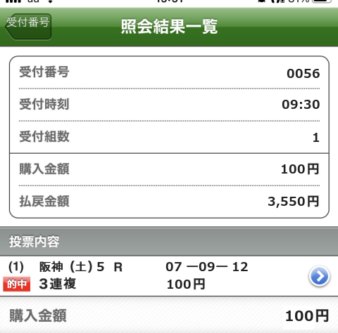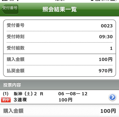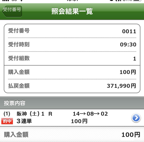 1着: 競馬6番人気 1回 0.07%