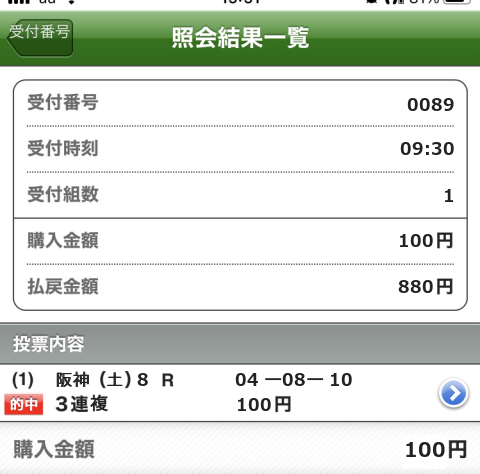 1着:▼結果9番人気 6回 0.41%