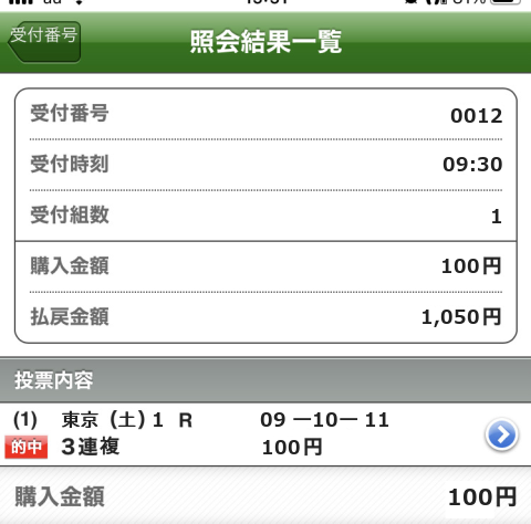 1着:競馬11番人気 1回 0.06%